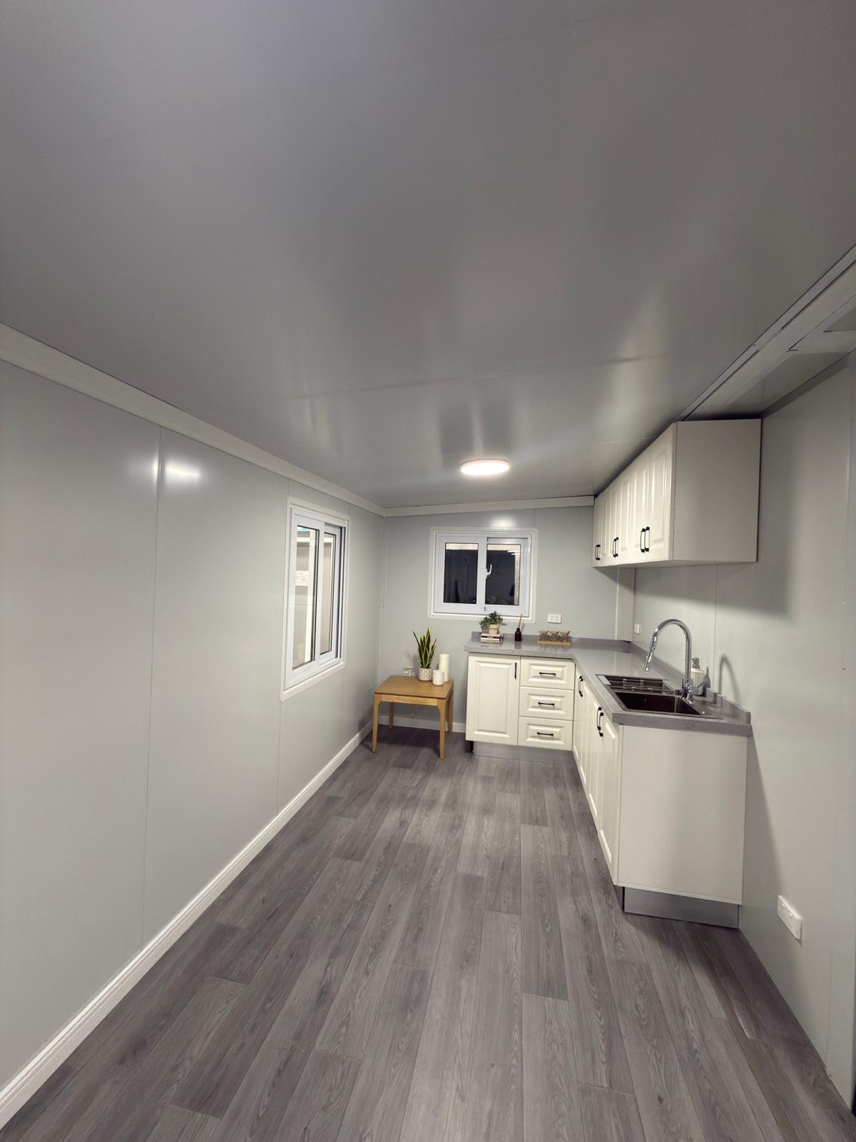 Enjoy our 20ft Modular Cabins – everything you need in a compact, comfortable home! With two cosy bedrooms, a smart toilet setup with separate wet and dry shower areas, and a spacious living room, it's perfect for small families, couples, or anyone needing extra space. Built tough with customisable colour steel exterior panels, and for first-time customers, we’re including a free water heater. Affordable, practical, and ready to go - the ideal choice for those who want comfort wherever they are.